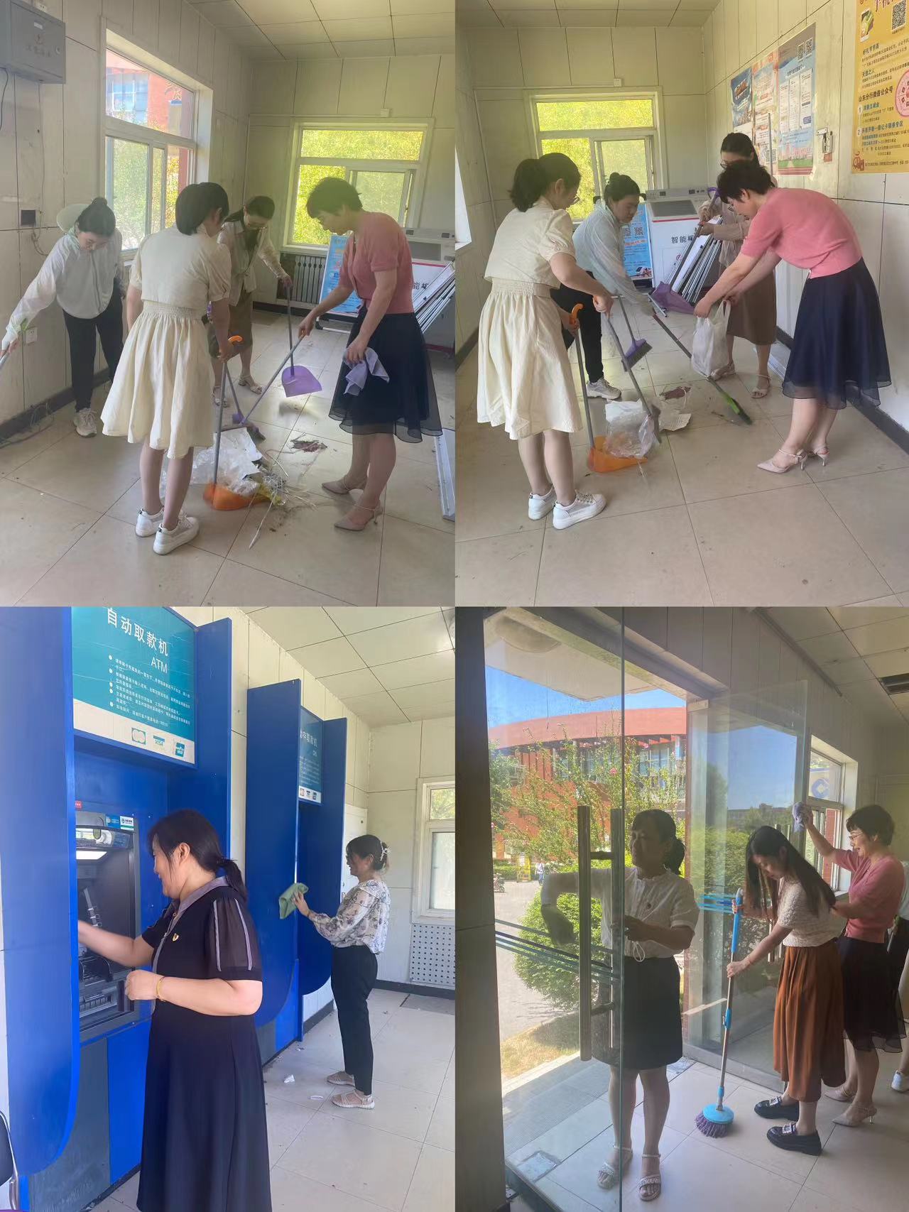 活动过程中,全体党员热情高涨、有序分工、协同合作,对校园自助银行进行无死角彻底清扫。通过开展此次党员志愿服务暨主题党日活动,为全体师生营造了一个干净、整洁、规范的自助银行环境,进一步提高了党员的奉献意识、责任意识和服务意识,充分发挥党员的先锋模范带头作用,以实际行动,向党的生日献礼。