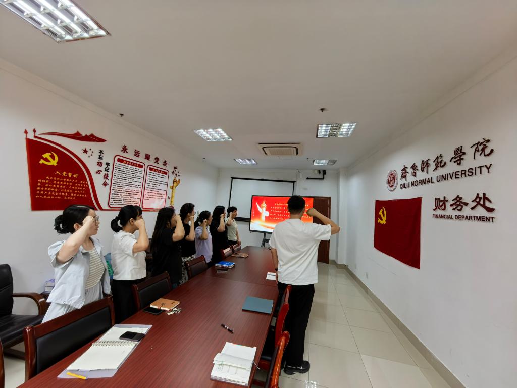 为庆祝中国共产党成立104周年,全面贯彻落实习近平新时代中国特色社会主义思想,推动深入贯彻中央八项规定精神学习教育走深走实。2025年7月1日,财务处党支部开展了“迎七一 悟初心 重温入党誓词,坚定理想信念”活动,并组织“以案为鉴知敬畏,筑牢底线促廉洁”警示教育活动。